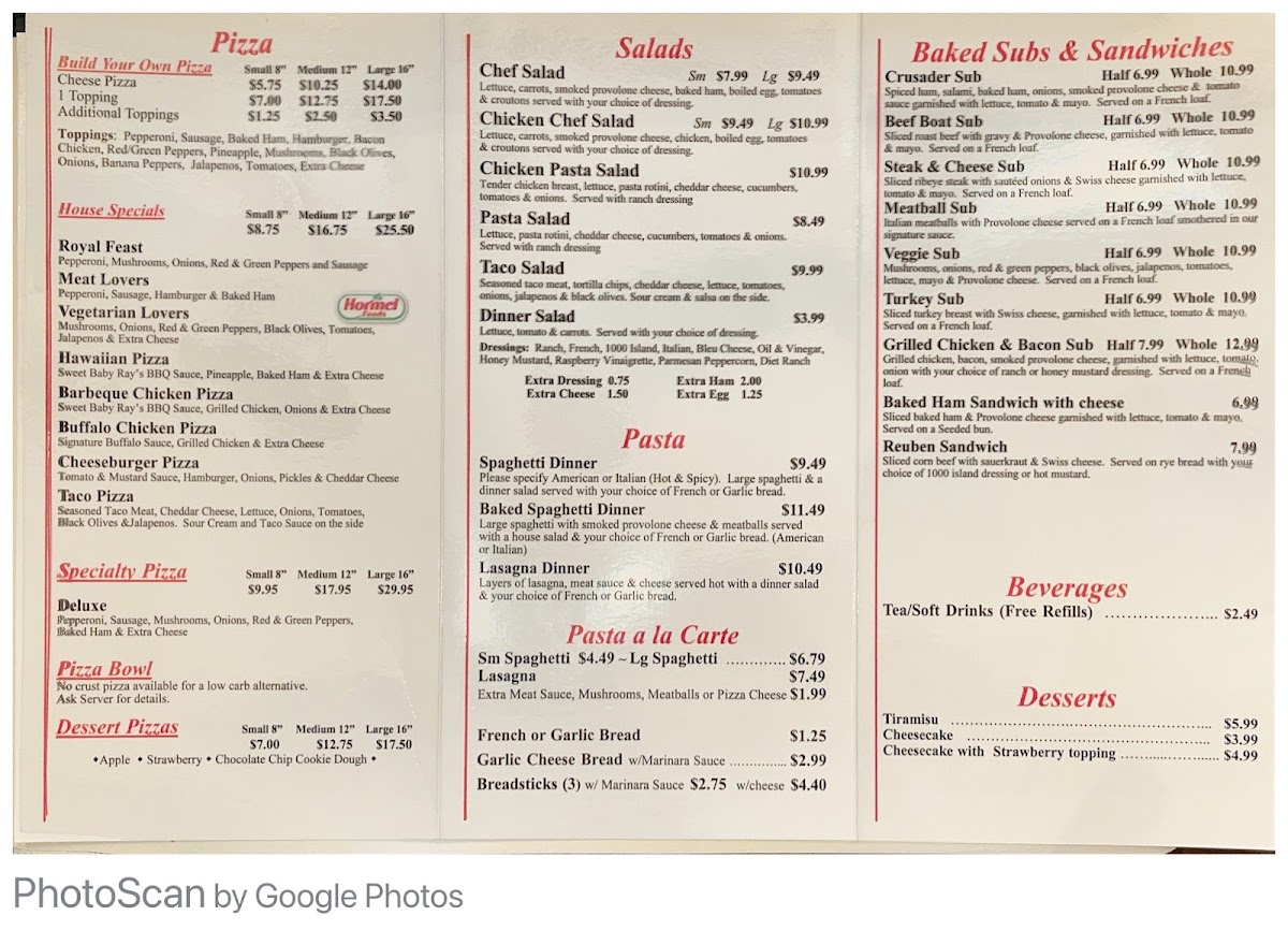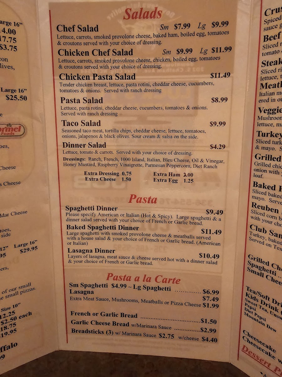 Layers of lasagna, meat sauce & cheese served hot with a dinner salad & your choice of French or garlic bread.